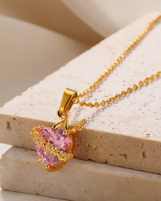 Collana Sacro Cuore di Gesù Rosso (Placcato in Oro)