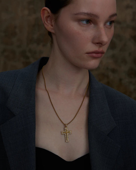 Collana con Croce Tempestata di Zirconi (Placcata in Oro)